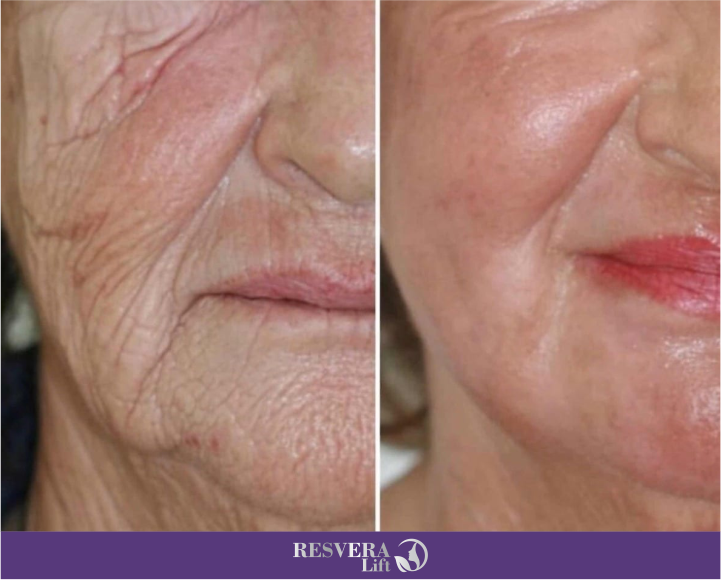 A fórmula exclusiva do Resvera Lift diminui a aparência das rugas deixando a pele do seu rosto mais lisa e sem as marcas do tempo.